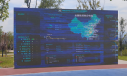 1个长展板 材料:黑底灯布喷绘画外打孔4050X310CM,搭建桁架4000x300cm,安装灯布时包侧边,背景板背后打斜支撑,并配沙袋,以确保安全。 |